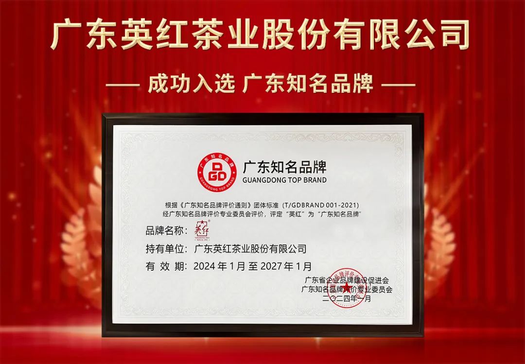 2024年又增添一項(xiàng)榮譽(yù)“廣東知名品牌”稱號,英紅茶業(yè)70多年來傳承“一茶、一企、一鎮(zhèn)”的歷史榮光,不斷開創(chuàng)“中國紅茶,世界英紅”新的輝煌!